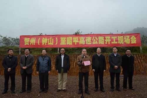 按照自治區(qū)的統(tǒng)一部署,12月29日上午10時(shí),2015年全區(qū)高速公路重大項(xiàng)目開竣工現(xiàn)場(chǎng)會(huì)第五分會(huì)場(chǎng)——賀州至巴馬高速公路(鐘山至昭平段)開工現(xiàn)場(chǎng)會(huì)在賀州市昭平縣舉行。集團(tuán)公司副董事長(zhǎng)、總經(jīng)理、黨委副書記唐咸秋,總工程師覃炳賢,賀州市副市長(zhǎng)閉海東等有關(guān)領(lǐng)導(dǎo)出席會(huì)議;賀州市、桂林市、昭平縣、鐘山縣、平樂(lè)縣等項(xiàng)目沿線各級(jí)政府領(lǐng)導(dǎo)和相關(guān)部門負(fù)責(zé)人以及廣西新恒通高速公路有限公司等有關(guān)單位代表約30人參加會(huì)議,共同見證項(xiàng)目開工建設(shè)。唐咸秋主持開工現(xiàn)場(chǎng)會(huì),覃炳賢介紹項(xiàng)目概況,項(xiàng)目沿線有關(guān)政府部門代表表態(tài)發(fā)言,閉海東宣布項(xiàng)目正式開工建設(shè)。