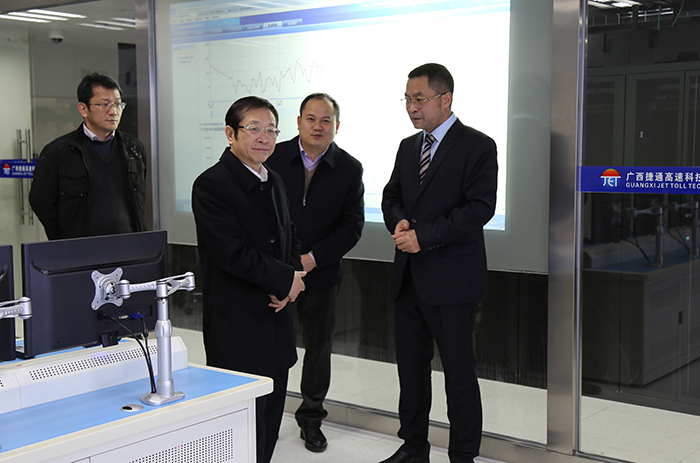 高雄深入了解了廣西ETC項(xiàng)目攻堅(jiān)及實(shí)現(xiàn)全國(guó)聯(lián)網(wǎng)后運(yùn)營(yíng)情況,充分肯定了新發(fā)展集團(tuán)在科技、人才領(lǐng)域的突出優(yōu)勢(shì),特別是近期在參與智慧交通、智慧城市建設(shè)中所作出的努力和貢獻(xiàn)。高雄一行參觀了建設(shè)在捷通公司的全區(qū)ETC系統(tǒng)中心機(jī)房,認(rèn)真聽取了呂毅關(guān)于我區(qū)ETC系統(tǒng)運(yùn)營(yíng)狀況、八桂行卡發(fā)行量、機(jī)房設(shè)備及安裝運(yùn)轉(zhuǎn)、車載OBU裝載使用等情況匯報(bào)。