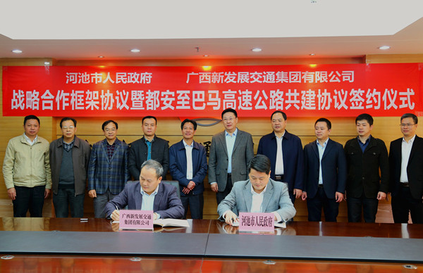 12月16日上午,集團(tuán)公司與河池市人民政府舉行戰(zhàn)略合作框架協(xié)議暨都安至巴馬高速公路共建協(xié)議簽約儀式。