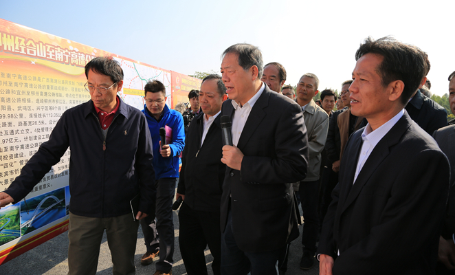 在柳州經(jīng)合山至南寧高速公路(簡稱新柳南高速公路)開工現(xiàn)場會主會場上,集團公司黨委書記、董事長朱堅和向自治區(qū)人民政府副主席陳剛、自治區(qū)交通運輸廳副廳長梁毅等與會領(lǐng)導(dǎo)介紹了新柳南高速公路項目情況,以及集團公司目前承建的自治區(qū)重大建設(shè)項目鐘山至來賓、來賓至巴馬、融水至河池等3個縣縣通高速公路項目建設(shè)情況,朱堅和表示,集團公司致力于成為自治區(qū)黨委、政府最可信賴的交通基礎(chǔ)設(shè)施投資運營力量,全力以赴完成各重大項目建設(shè)任務(wù)。