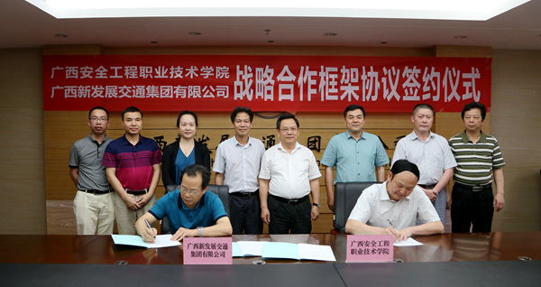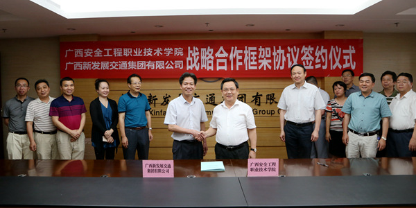 黎志逘祝賀雙方正式建立戰(zhàn)略合作伙伴關(guān)系。他說(shuō),廣西安全工程職業(yè)技術(shù)學(xué)院是經(jīng)廣西壯族自治區(qū)人民政府批準(zhǔn)成立、教育部備案的公辦全日制普通高等職業(yè)學(xué)院,隸屬?gòu)V西壯族自治區(qū)安全生產(chǎn)監(jiān)督管理局管理,是廣西唯一一所、全國(guó)第三所專門培養(yǎng)安全類高等專業(yè)技術(shù)人才的現(xiàn)代化職業(yè)學(xué)院。為了深入貫徹黨的十八屆六中全會(huì)和習(xí)近平總書記、李克強(qiáng)總理關(guān)于安全生產(chǎn)工作的重要指示批示精神,推動(dòng)企業(yè)落實(shí)安全生產(chǎn)主體責(zé)任,在全社會(huì)凝聚弘揚(yáng)安全發(fā)展理念、支持安全生產(chǎn)的共識(shí),“十三五”期間乃至更長(zhǎng)一個(gè)時(shí)期,雙方將建立互信、互補(bǔ)、互援的戰(zhàn)略合作關(guān)系,開(kāi)啟校企全面深入合作的新篇章。通過(guò)深入合作交流,促進(jìn)了廣西安全工程職業(yè)技術(shù)學(xué)院發(fā)展,提升了廣西新發(fā)展交通集團(tuán)有限公司在安全生產(chǎn)方面的實(shí)力,最終實(shí)現(xiàn)雙方的共贏。