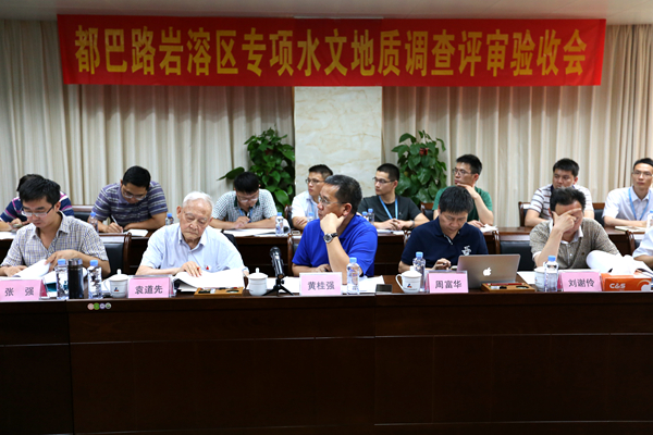 袁道先院士(左二)參加都巴路初步設(shè)計(jì)巖溶區(qū)專項(xiàng)水文地質(zhì)調(diào)查評審驗(yàn)收研討