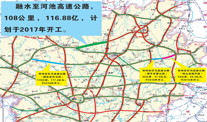 融水至河池高速公路是自治區(qū)重點(diǎn)推進(jìn)的縣縣通高速公路項(xiàng)目之一,是廣西高速公路路網(wǎng)規(guī)劃中“橫2支線”——桂林至河池高速公路的重要構(gòu)成路段。項(xiàng)目起于柳州市融安縣潭頭鄉(xiāng)紅嶺村附近,與擬建的桂林至柳城高速公路連接,并與三江至柳州高速公路相交,終于宜州市德勝鎮(zhèn)全村附近,與宜州至河池高速公路相接。主線全長(zhǎng)約108公里,設(shè)計(jì)車(chē)速100公里/小時(shí),路基寬度 26米,采用雙向四車(chē)道高速公路標(biāo)準(zhǔn)。項(xiàng)目采用“區(qū)市共建”模式建設(shè),總投資估算116.88億元,計(jì)劃于2021年12月建成通車(chē)。項(xiàng)目建成后,將結(jié)束羅城縣不通高速公路的歷史,公路網(wǎng)絡(luò)互聯(lián)互通將更加完善,公路沿線群眾出行將更加快捷,沿線市、縣、鎮(zhèn)、鄉(xiāng)的旅游產(chǎn)業(yè)、經(jīng)濟(jì)發(fā)展以及扶貧攻堅(jiān)事業(yè)將得到極大的促進(jìn)。