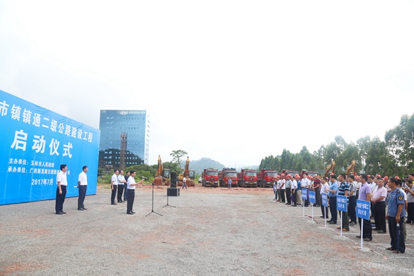 玉林市交通運(yùn)輸局局長(zhǎng)何東真主持儀式。玉林市市交運(yùn)局、發(fā)改委、住建委、國(guó)土局、林業(yè)局等相關(guān)部門(mén)負(fù)責(zé)人,各縣(市、區(qū))政府分管交通工作有關(guān)部門(mén)負(fù)責(zé)人、興業(yè)縣干群代表以及新發(fā)展集團(tuán)下屬企業(yè)代表參加了啟動(dòng)儀式。(陳福喜 文/圖)