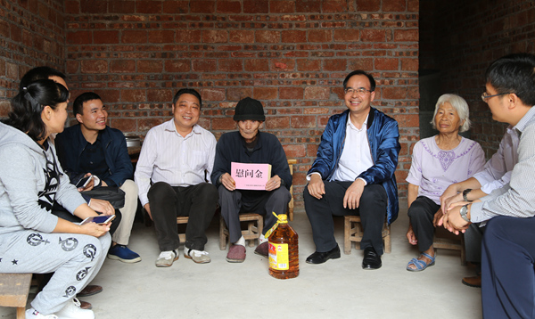 10月25日,集團(tuán)公司副總經(jīng)理李德智、辦公室主任磨立堂,工程院黨總支部書記、院長謝登禹以及合山市人大常委會(huì)主任藍(lán)賓北一行到集團(tuán)公司扶貧聯(lián)系來賓合山市河里鎮(zhèn)河里村開展精準(zhǔn)扶貧日走訪慰問活動(dòng)。通過開展座談交流,進(jìn)一步掌握河里村脫貧攻堅(jiān)進(jìn)展情況,并為下一步脫貧工作提出建議與對策。同時(shí),還來到河里村韋啟助、羅耀權(quán)、曾有姣、韋遷池等貧困戶的家里,了解生產(chǎn)生活情況,并送上了慰問金和慰問品。