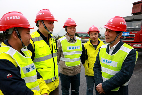 宣講會(huì)結(jié)束后,黃健教授深入柳州至南寧高速公路改擴(kuò)建5標(biāo)項(xiàng)目施工一線調(diào)研,與現(xiàn)場施工人員進(jìn)行親切交流,并就職工提出的問題一一進(jìn)行耐心解答。(廣西路建集團(tuán) 供稿)