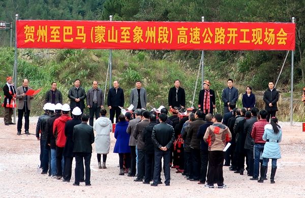 12月22日,集團(tuán)公司賀州至巴馬高速公路(蒙山至象州段)(簡(jiǎn)稱“蒙象高速”)在金秀縣召開開工現(xiàn)場(chǎng)會(huì),標(biāo)志著該項(xiàng)目正式開工建設(shè)。來賓市人民政府副市長(zhǎng)韋平主持會(huì)議。