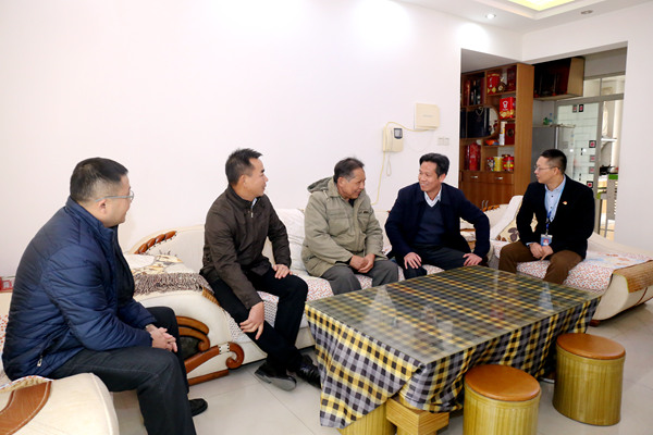 2月7日,集團(tuán)公司黨委書記、董事長(zhǎng)朱堅(jiān)和,紀(jì)委書記韋慶和到交通設(shè)計(jì)院有限公司職工小區(qū)看望慰問退休困難職工黃仁高。在黃仁高同志家中,朱堅(jiān)和關(guān)心詢問他的病情,了解他的診療情況,與他分享公司近年來在生產(chǎn)經(jīng)營(yíng)、科研創(chuàng)新方面取得的重大成績(jī),并對(duì)以他為代表的設(shè)計(jì)院老一輩員工為設(shè)計(jì)院發(fā)展所做的貢獻(xiàn)表示感謝,代表集團(tuán)公司黨委向他及他的家人致以問候和祝福。