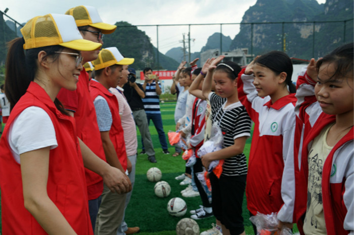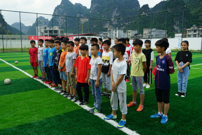 六也鄉(xiāng)中心小學(xué)韋校長對青年志愿者們的幫助表示衷心的感謝,他表示:志愿者們的愛心不僅解決了孩子們的運(yùn)動場所問題,更是在孩子們的心中種下了希望的種子,圓了孩子們的足球夢。六年級的小浩作為球隊(duì)隊(duì)長為都巴高速志愿者代表送上錦旗,并表示一定不會辜負(fù)大家的愛心與期望,勤奮鍛煉、努力向上,做一個對社會有用的人。