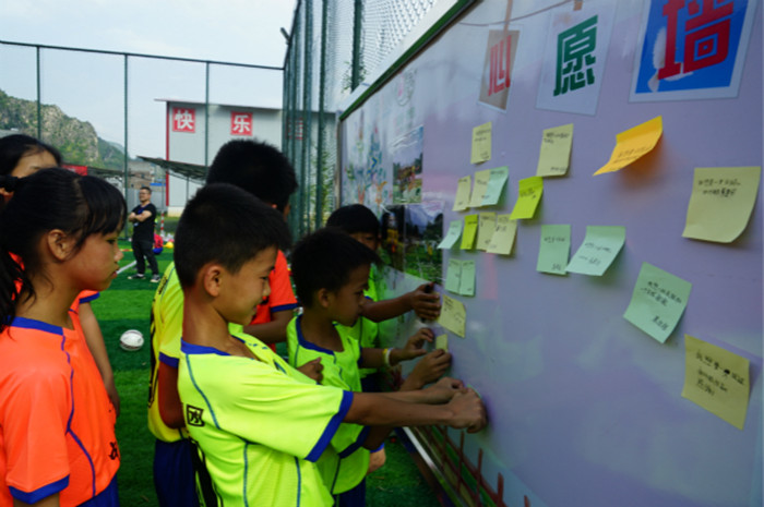在活動現(xiàn)場,志愿者們還為孩子們設(shè)置了“心愿墻”,孩子們在老師的指引下寫出了埋藏在心里已久的心愿—“我想要一件皇馬隊(duì)球衣”、“我想要一本日記本”……一個個質(zhì)樸的心愿都將在志愿者的幫助下得以實(shí)現(xiàn)。