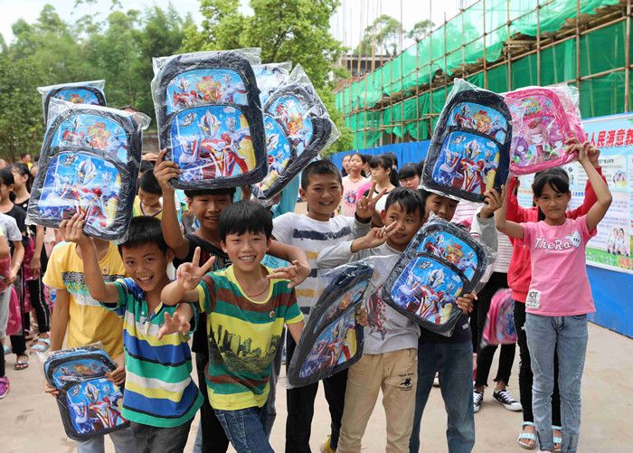鄧少華、馮學(xué)茂等領(lǐng)導(dǎo)向受捐贈(zèng)學(xué)校捐贈(zèng)物質(zhì)。小學(xué)生接過志愿者手中嶄新、漂亮的書包,高興地舉起來,臉上洋溢著幸福的笑容。樟木林鎮(zhèn)中心小學(xué)校長(zhǎng)葉燕作代表受贈(zèng)單位向廣西新恒通高速公路有限公司等單位表示衷心的感謝,同時(shí),他表示會(huì)不負(fù)眾望,把學(xué)校辦成社會(huì)滿意、家長(zhǎng)放心、學(xué)生成才的學(xué)校。
