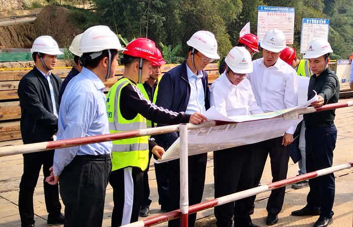李定倫一行到紅水河特大橋一線施工現(xiàn)場與建設人員深入溝通交流,詳細了解項目進展情況,聽取當前項目建設存在的重點難點,對項目建設的總體規(guī)劃和方案提出意見,并要求指揮部和各參建單位齊心協(xié)力、科學謀劃布局,認真研究可行性方案,落實建設責任,嚴把質(zhì)量安全關,確保紅水河特大橋項目建設高效、扎實、快速推進。