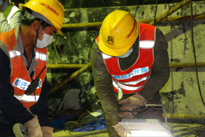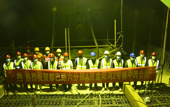 盤陽河2號橋中跨合龍結(jié)構(gòu)受力復(fù)雜,對施工工藝及質(zhì)量要求較高,且作業(yè)面積狹小,在夜間低溫條件下才能進(jìn)行合龍澆筑,施工難度較大。都巴高速指揮部與項目管理人員精心策劃、嚴(yán)密組織施工,成立了工作領(lǐng)導(dǎo)小組和突擊隊,堅持一手抓疫情防控、一手抓復(fù)工復(fù)產(chǎn),安全、優(yōu)質(zhì)、高效完成建設(shè)任務(wù)。