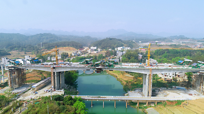 據(jù)悉,巴馬樞紐互通是賀巴高速與河百高速相銜接的一個互通,也是賀巴高速的終點?;ネˋ、C匝道2號大橋長度為532米,剛構(gòu)橋主跨為110米,跨越盤陽河,是都巴高速的控制性工程之一。截至日前,A匝道樁基完成100%、墩柱完成100%、蓋梁完成100%,上構(gòu)剛構(gòu)完成48%;C匝道樁基完成100%、墩柱完成100%、蓋梁完成100%,上構(gòu)剛構(gòu)完成36%。